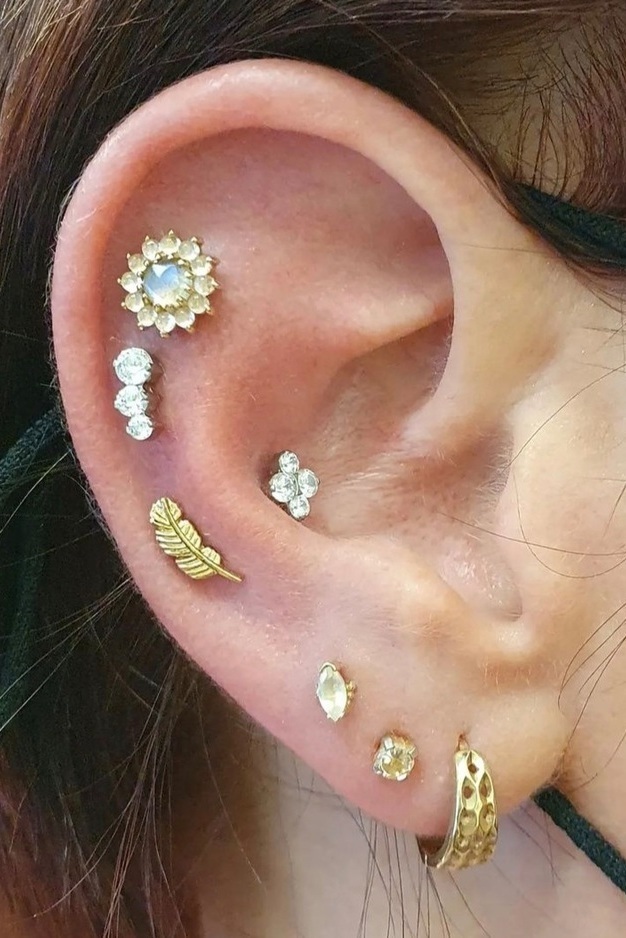 A range of piercings done at ninjaflower, from standard lobes, helix, trigs, conch, rook and more...